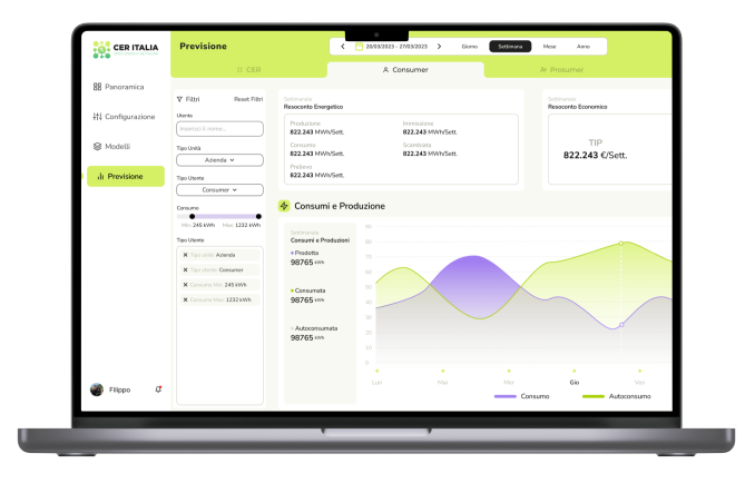 Forniamo una piattaforma gestionale della CER, personalizzabile e modulare, per il monitoraggio degli scambi energetici che avvengono tra i membri